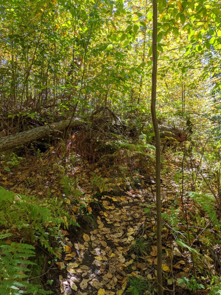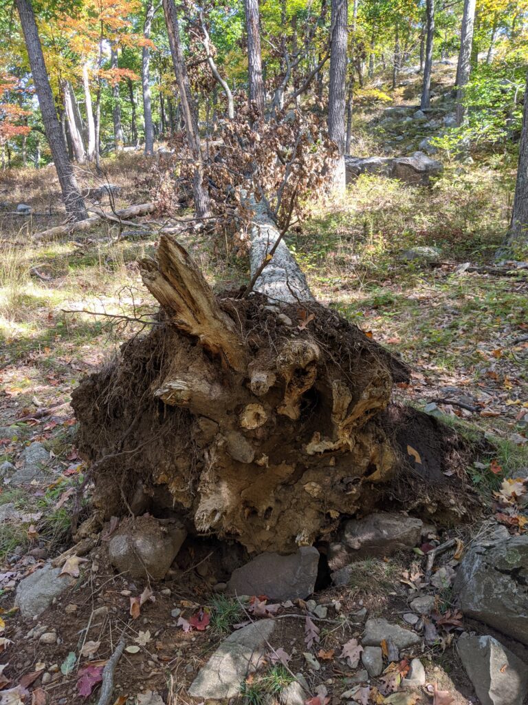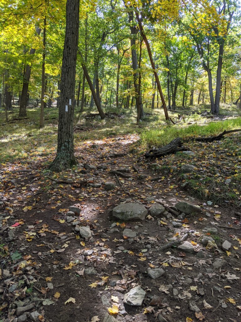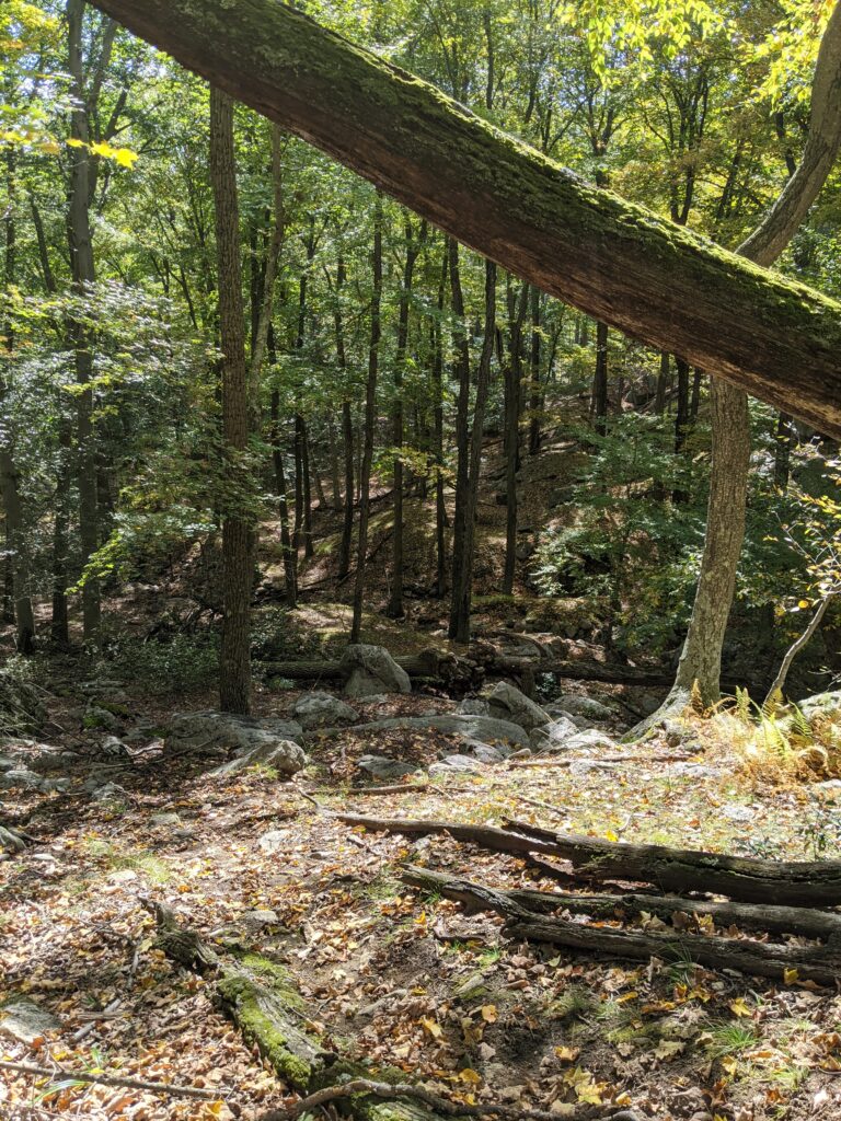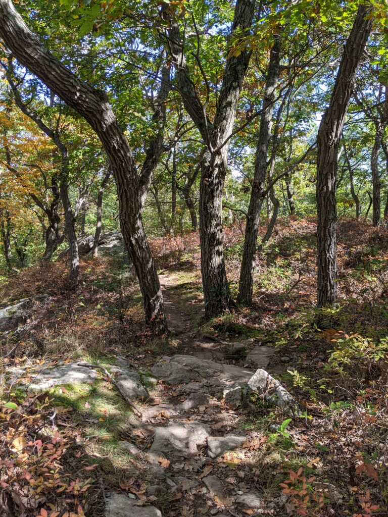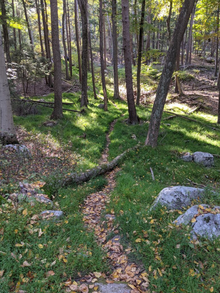 After walking through a clearing from the parking lot, I entered the forest and was almost immediately faced with a moderate incline up an unnamed mountain. The rise is about 600 ft over about 8/10ths of a mile. Once I got past that part, the hike was relatively smooth for a while.