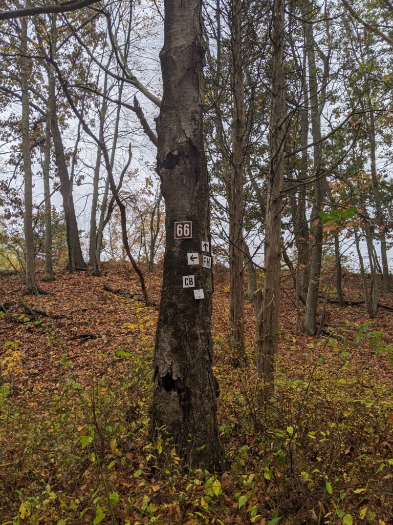 I lost some energy toward the middle of my hike, but overall I was pleased with the day. About 40 minutes in, the clouds started letting down a light rain for about 30 minutes, but it wasn't enough to get me too wet. I really want to come back and explore that Orange phenology trail again and checkout the wildflower garden in the spring or summer. I'm pleased with the intersection markings in this park. They make it so much easier to navigate with a paper make and figure out exactly where you are.