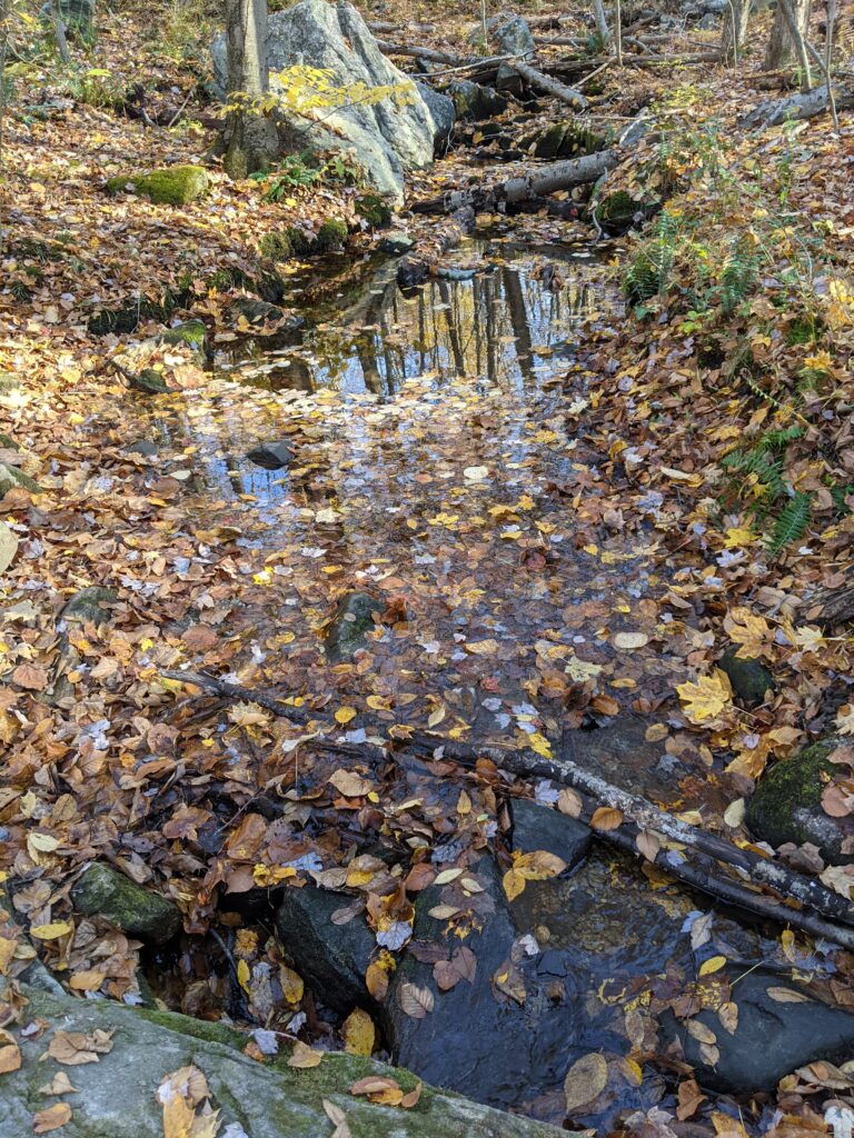 After crossing another parking lot and another open field, I connected to a section of the Fox Hill trail I had not explored earlier. I swiftly made it to intersection 2, where FH crosses the Cross River via another beautiful wooden bridge. I walked down to explore the riverbed. A sign said that catch and release trout fishing is allowed. From there, I took the unnamed white blazed trail, connecting with DH at intersection 4, then making a left at DH/Br at intersection 43, and finding my way back out to Route 35 via intersection 44. I walked back to my car to end my journey.